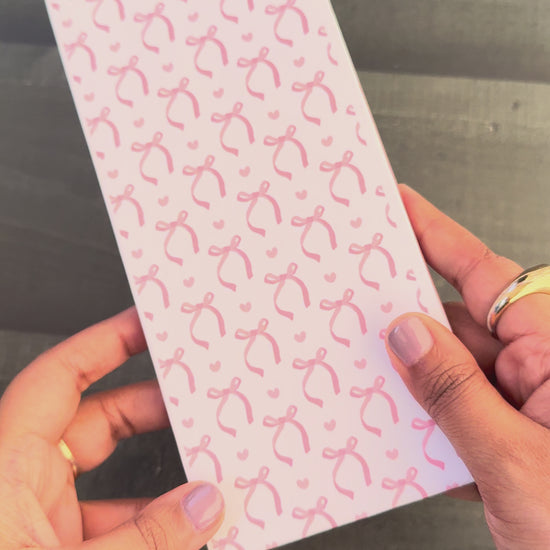 This compact and chic notepad is perfect for quick notes, reminders, and love scribbles. Designed for convenience, it's small enough to carry everywhere while still offering plenty of space to write!